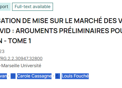 Actualités, Articles scientifiques, Carole Cassagne, Covid / Vaccination : biologie, efficacité, effets indésirables,, Dr Louis Fouché, Vincent PAVANVincent Pavan Vincent Pavan Carole Cassagne Carole Cassagne Louis Fouché Louis Fouché