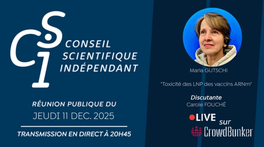 Toxicité des nanoparticules lipidiques (LNP) des vaccins ARNm : une réévaluation critiqueCSI #175 se concentre sur les nanoparticules lipidiques (LNP), composants essentiels des vaccins ARNm (Pfizer, Moderna), longtemps classées comme « excipients inactifs ». Les intervenants démontrent qu’elles sont des entités biologiques actives aux effets toxiques potentiellement graves, et appellent à un moratoire sur ces technologies.