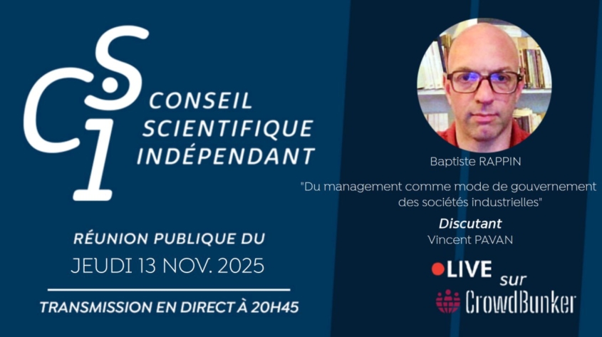 Mots-clés : société managériale, Baptiste Rappin, cybernétique management, feedback loops, déshumanisation travail, burnout société, thermodynamique organisation, Louis Fouché, CSI 173, Conseil Scientifique Indépendant, Vincent Pavan, management comme gouvernement.